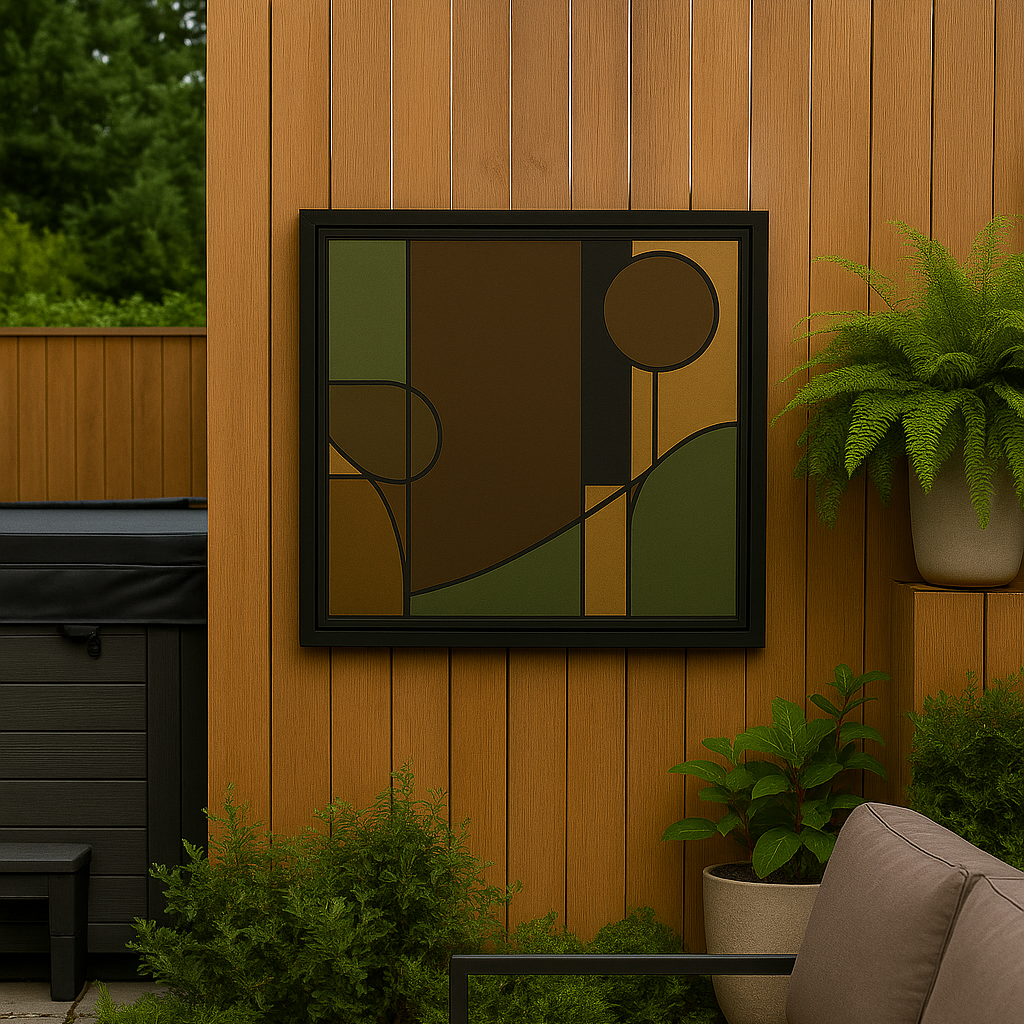 Add style and character to your outdoor space with our 2x2 decorative panels, available in four signature design styles: Modern Geometric, Abstract Nature, Art Deco, and Mid-Century Modern. Each panel is crafted from Armorite, a durable, exterior-grade MDF(medium density fiberboard) commonly used in home construction for window and door trim. We protect every panel with a professional finish, primed and coated twice with Sherwin-Williams Kem Aqua BP siding paint for long-lasting beauty and durability.